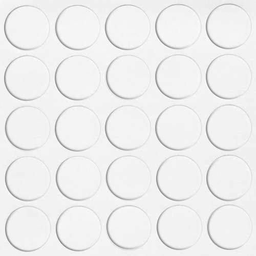 Ø 14 mm | Spessore: 0,3 mm. Materiale: melammina, incolla: colla acrilica. Contenuto della confezione: 1 striscia di 25 cuscinetti adesivi