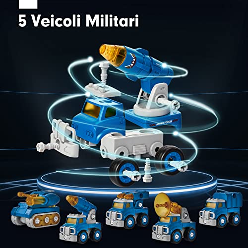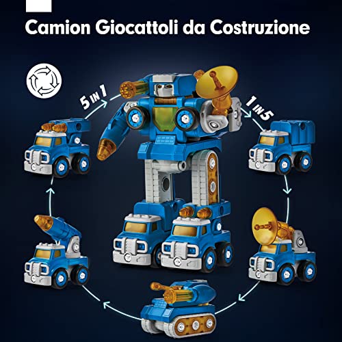 Hahaland 5 in 1 Camion Giocattoli da Costruzione per bambini 4 anni, Giochi Smontabile Robot Creativi STEM Veicoli Giocattolo Educativi 3 4 5 anni