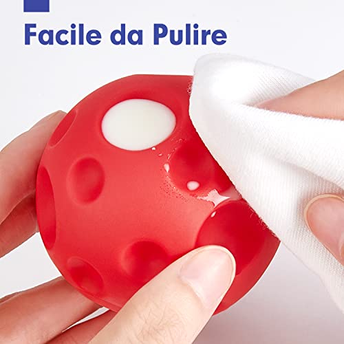 【Texture uniche】 Tocca e tocca sei palline concave e convesse di diverse forme e dimensioni, facili da afferrare e ottime per sviluppare abilità tattili ed esercitare efficacemente la capacità del tuo bambino di afferrare gli oggetti.