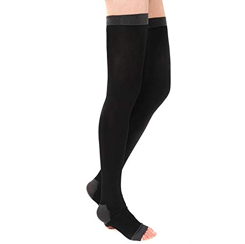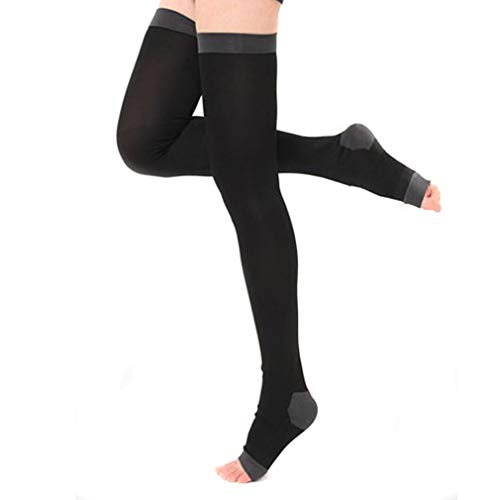 Haifly Calze dimagranti a compressione, calze per dormire durante la notte, leggings alti alla coscia, calze aperte, Nero, Taglia unica
