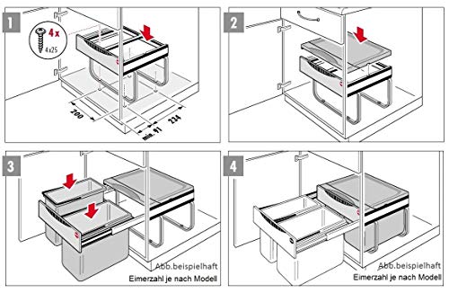 Hailo 3644731 Pattumiera TR Swing 50.3/29 da 500 mm di larghezza per armadi con porta girevole, grau, plastica, 2900