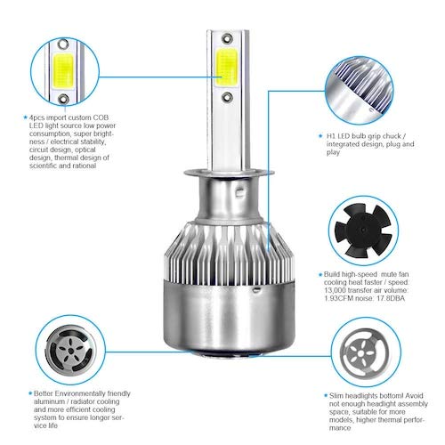 Questo elenco include 2 pezzi di faro a LED. Ogni lampadina ha LED COB ad alta potenza da 2 pezzi.