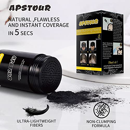 Hair Building Fibers for Thinning Hair & Bald Spots-Upgrade 25 g, Apstour Hair Fiber for Women & Men,Natural & Undetectable Hair Thickening Fibers, Thick, Full, Shiny Hair in 5 Sec (BLACK)