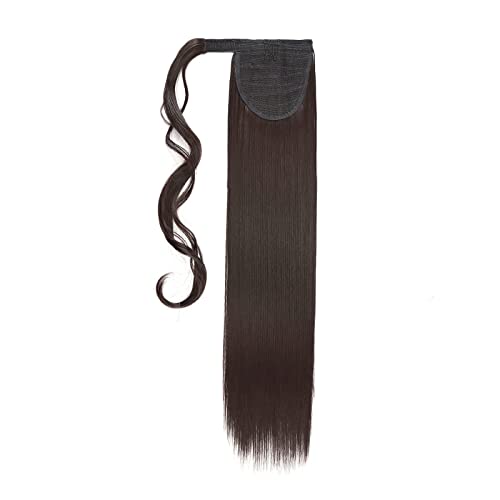 Hair Extensions Wrap on Ponytail Extension Capelli Veri Coda di Cavallo Parrucchino Ombre 58cm Dritto Marrone scuro