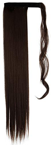 Hair Extensions Wrap on Ponytail Extension Capelli Veri Coda di Cavallo Parrucchino Ombre 58cm Dritto Marrone medio