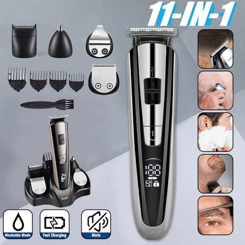 Hair Trimmer Grooming Kit Cordless LED Display Electric Shaver Beard Nose Ear Hair Clipper Tool Barber Trimer Gifts for Men