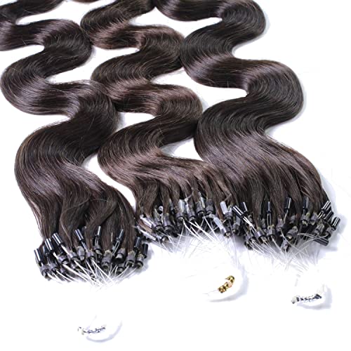Hair2Heart 25 x 0.5g Microring Loop Extension Capelli Veri - 50cm - Ondulato, Colore #2 marrone scuro