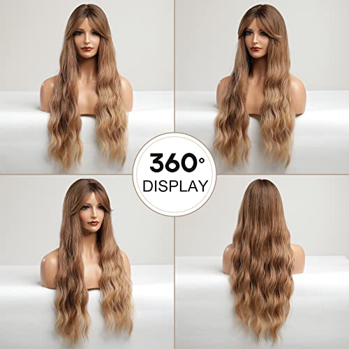 HAIRCUBE Lungo Curly/Wave con Bangs Parrucche per le Donne Natura Resistente al calore Fibra sintetica Parrucche con Pony Cosplay quotidiano (Marrone)