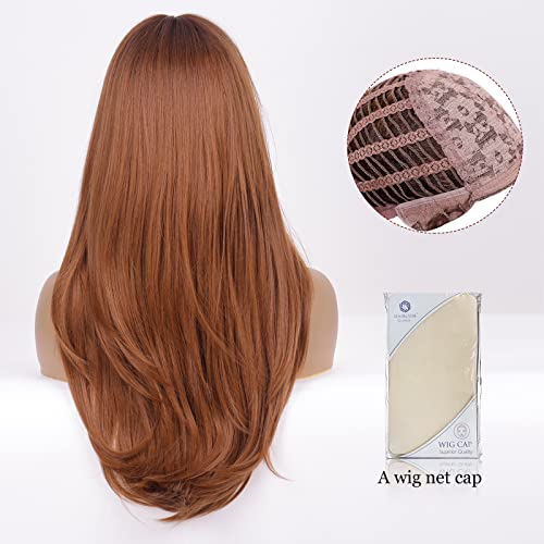 HAIRCUBE Lungo diritto con frange Parrucche per le Donne Natura Resistente al calore Fibra sintetica Parrucche con Pony Cosplay quotidiano (dark ombre auburn)