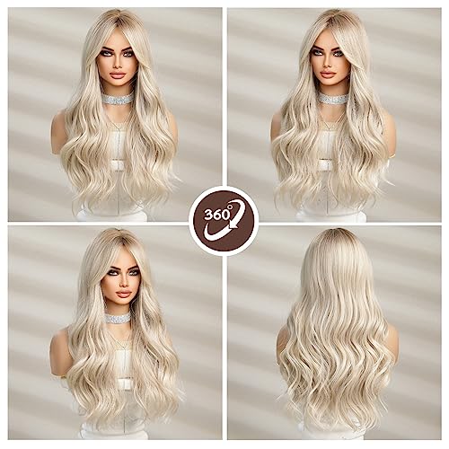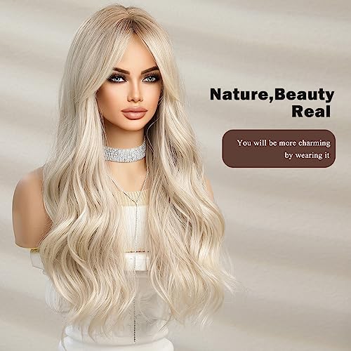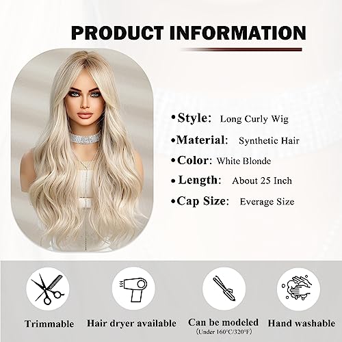 HAIRCUBE Parrucche Bionde Bianche Lunghe per Donna Parrucca di Capelli Sintetici con Frangia