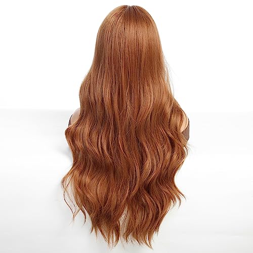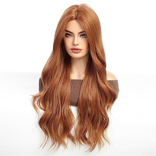 HAIRCUBE Parrucche Lunghe Ramate per Donna, Parrucca Sintetica per Capelli Ricci con Riga Centrale
