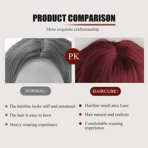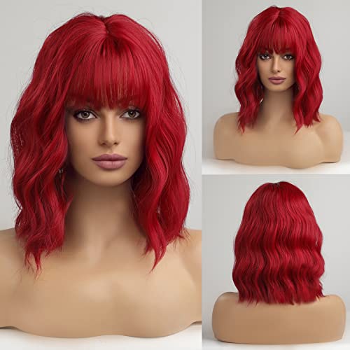 HAIRCUBE Parrucche rosse per donne bob short riccio di onda sintetica parrucche naturali con colpi quotidiani parrucca (14 pollici)