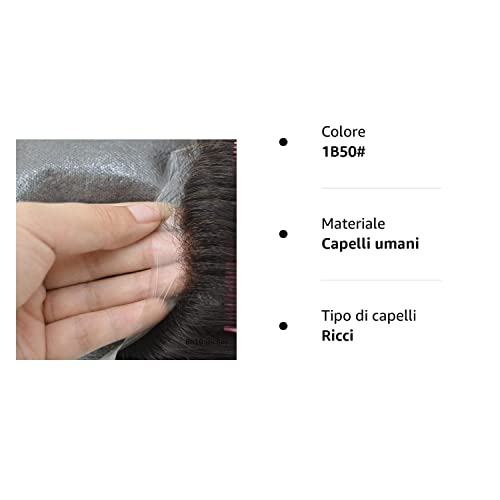 Veri capelli umani per uomo: Capelli Remy indiani di alta qualità al 100%. La curvatura dei capelli è una leggera onda di 3,0 cm, molto naturale, come i tuoi capelli