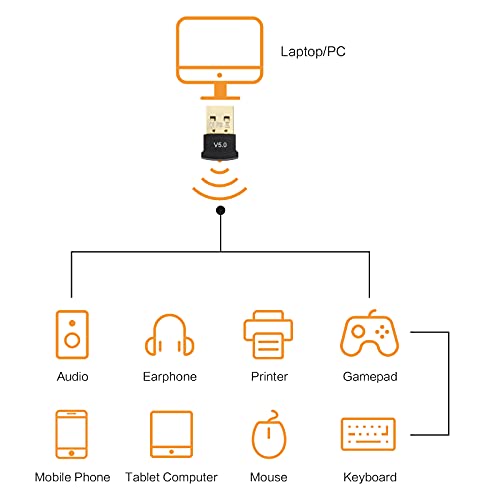 【Trasmissione Dual-Mode 5.0】 L'adattatore Bluetooth 5.0 usb utilizza la vera tecnologia Bluetooth 5.0, trasmissione dual-mode. Rispetto al Bluetooth 4.0, la velocità di trasmissione dati più veloce, fino a 3 Mbps, fornendo una qualità del suono più elevata e una connessione più stabile.