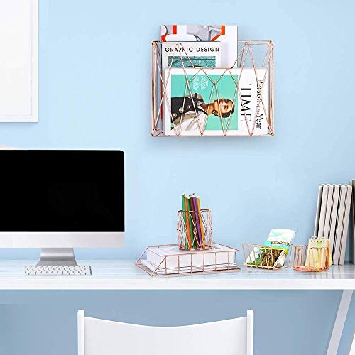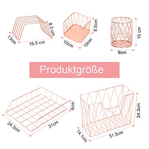 HAITRAL Set di organizer da scrivania 5 in 1, include cestino organizer, porta bicchieri, portariviste, posta, porta appunti adesivi per la casa o l'ufficio, oro rosa