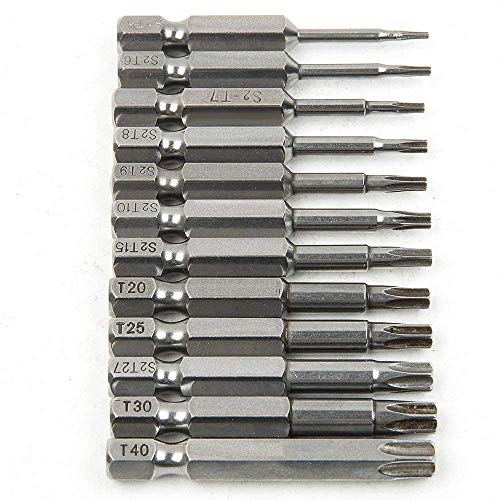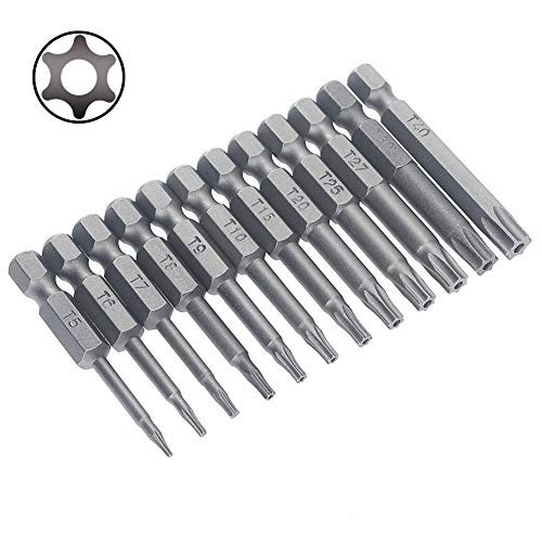 Hakkin, set di punte per cacciavite, 12 pezzi, 50 mm, 1/4", codolo esagonale, torx a stella, acciaio magnetico S2, testina di sicurezza