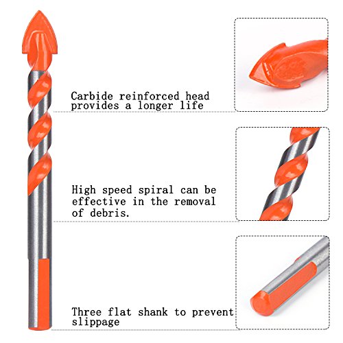 Hakkin, Punte per trapano in lega triangolare, per piastrelle, cemento, mattoni, vetro, plastica, legno e marmo, 3/4/5/6/8/10/12/14/16 mm, 9 pezzi