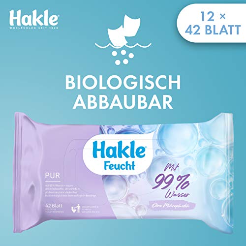 Contenuto della confezione: confezione da 12 fogli di carta igienica Hakle Feucht Pur (12 x 42 fogli), salviette umidificate e delicate sulla pelle