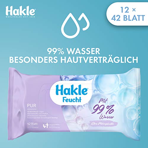 Hakle Pur umida in confezione da 12, 504 panni (12 x 42 fogli), carta igienica umida nutriente, salviette umide con acqua al 99%, salviettine umidificate rapidamente solubili in acqua