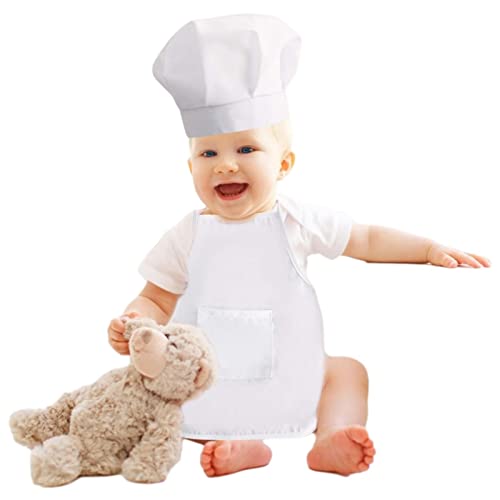 Halatua Vestito da Cuoco per Bambino - Set Grembiule e Cappello da Cuoco per Bambini - Puntello per Servizio Fotografico per per Bambine 7-18 Mesi, Bianco