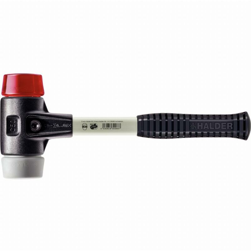 Dettagli: La serie SIMPLEX 3736 presenta una combinazione di punte medie in TPE/plastica. La punta media grigia in TPE (serie 3203) offre una forza d'impatto paragonabile a quella della punta nera in gomma. Tuttavia, non lascia segni di abrasione neri indesiderati. La punta in plastica rossa (serie 3206) è dura e resistente all'olio e al grasso. Grazie all'aumento dello spessore delle pareti e dei distanziali, l'alloggiamento nero in ferro malleabile rinforzato garantisce un'elevata stabilità. Il peso maggiorato consente un'elevata forza d'impatto. L'impugnatura in fibra di vetro, molto robusta e durevole, ha una buona resistenza alla rottura. Ha un design ergonomico e un'impugnatura antiscivolo. La superficie è liscia e inorganica (insensibile all'umidità). Secondo il principio HALDER SIMPLEX, tutti i componenti sono intercambiabili e adattabili. Ciò consente di risparmiare non solo denaro, ma anche risorse. Questa versione è disponibile da D30 mm a D60 mm. Caratteristiche del