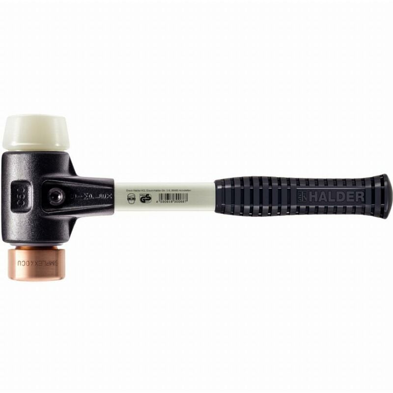 Dettagli: La serie SIMPLEX 3748 è caratterizzata dalla combinazione di punte in rame e nylon. La punta in rame (serie 3804) è la punta più dura della gamma SIMPLEX e consente forze d'impatto molto elevate, ma più morbide rispetto a quelle di un martello in acciaio. Sostituisce un tradizionale martello in rame. La punta in nylon (serie 3208) offre eccellenti caratteristiche di percussione e garantisce la massima resistenza e durata. È costituito da un materiale estruso estremamente omogeneo. È molto più resistente all'usura e durevole delle punte in plastica stampata a iniezione e non si sfalda, nemmeno a temperature inferiori allo zero. È inoltre resistente all'olio e al grasso. L'alloggiamento in ghisa malleabile nera rinforzata garantisce un elevato grado di stabilità grazie all'aumento dello spessore delle pareti e dei distanziali. Il peso maggiorato consente un'elevata forza d'impatto. L'impugnatura in fibra di vetro, molto robusta e durevole, ha una buona resistenza alla