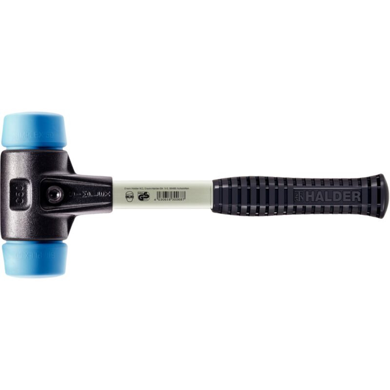 Simplex-Schonhammer della serie 3701 è dotato di inserto blu-soft (serie 3201) su entrambi i lati. Questo è l'uso più morbido nella serie Simplex, fortemente smorzante e quindi adatto a un lavoro sensibile. Rispetto al martello di gomma convenzionale, non lascia un'abrasione nera indesiderata. L'alloggiamento di fusione superiore nero e rinforzato garantisce un'elevata stabilità a causa degli spessori e dei montanti della parete più spessi. L'aumento del peso consente di alto sfarzo. Il vaso in fibra di vetro molto stabile e resistente ha un'alta libertà di rottura. È di forma ergonomica e contiene una maniglia non slittata. Ha una superficie liscia ed è inorganica (non sensibile all'umidità). Secondo l'intelligente principio simplex, tutti i componenti possono essere intercambiabili e retrofit. Questo non solo protegge il portafoglio, ma anche le risorse. Questa versione della taglia D30mm a D80MM è disponibile.