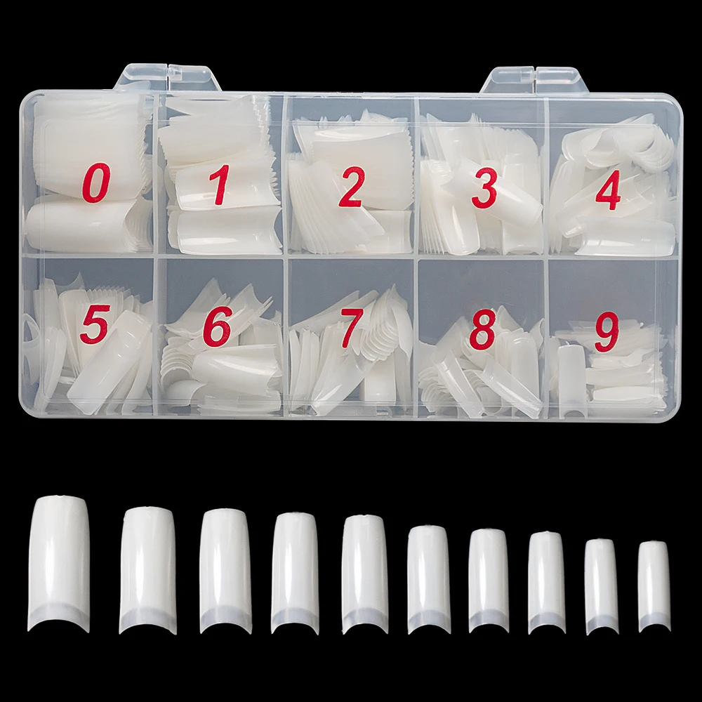 Half Cover False Nails Tips, 500pcs Acrylic Fake Nail Manicure Sets, French Style Artificial Nails with Designs For Nail Art
