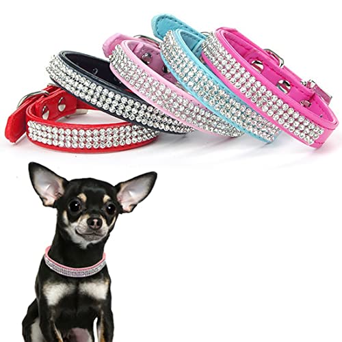 HALFSUMO Collare Cane Collare per Cani in Pelle Collari per Cani Scintillanti con Strass Borchiati per Animali Domestici Cuccioli Gatti Cani Viola L