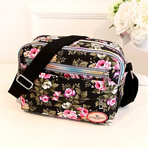 Halijack - Borsa a tracolla da donna, in tela, con stampa vintage, borsa a tracolla per università, casual, da viaggio, borsa da spiaggia, piccola borsa a tracolla (nero), Nero, Taglia unica
