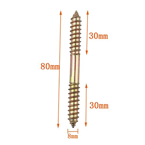 HALJIA 10PCS M8 x 80 MM doppio autofilettanti bulloni per fissaggio tasselli per mobili in legno