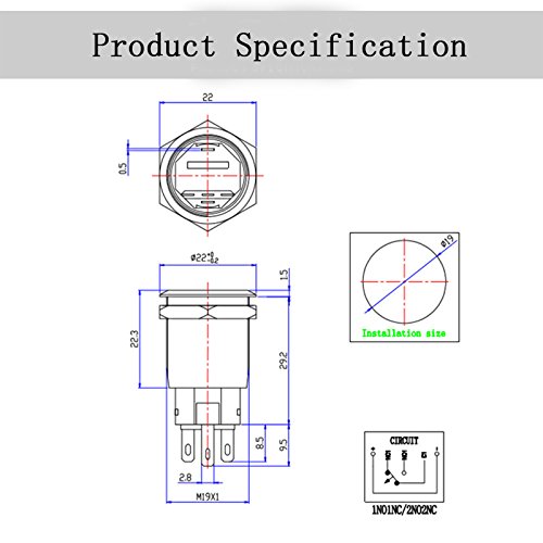Dimensione del foro di montaggio: 19mm, Valutazione interruttore: 5A/250AC, Combinazione interruttore: 1NO1NC/2NO2NC Durata del prodotto: 10000 volte.