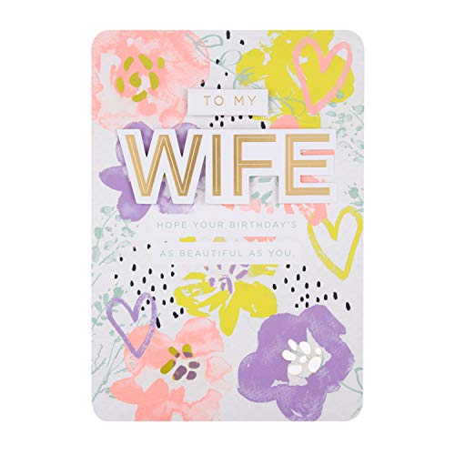 Hallmark - Biglietto di auguri di compleanno per moglie, design contemporaneo floreale con testo 3D