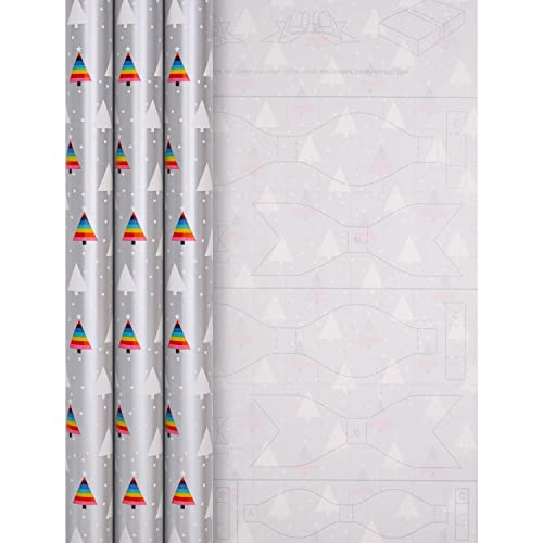 Hallmark Set di carta da regalo con albero di Natale arcobaleno, 3 rotoli in 1, design colorato, 3 fogli di carta da regalo con albero arcobaleno