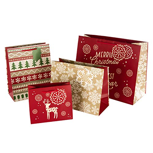 Hallmark Confezione da 4 sacchetti regalo natalizi misti tradizionali