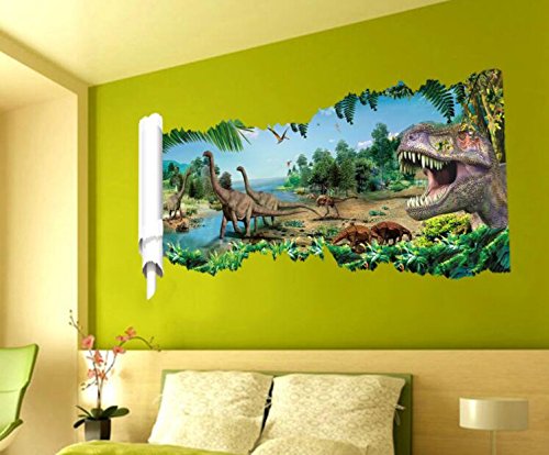 HALLOBO XXL Adesivo da Parete 3D Finestra Dinosauro Jurassic Park murale Soggiorno Camera da Letto Decorazione Immagine da Parete
