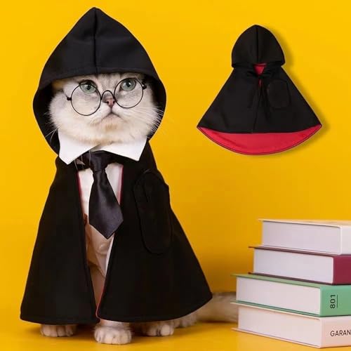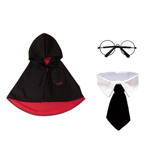 : Questo splendido mantello per gatti con cappuccio è una combinazione di rosso e nero. Il bellissimo ricamo sul petto simboleggia l'ambizione e la lotta. La combinazione di occhiali e cravatta rende l'intero outfit più unico e bello.