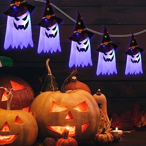 Halloween Luci Stringa,Luci della Festa di HalloweenFantasmi, 5 PCS Luci Stringa con Decorazioni Fantasma,Funziona a Batteria,Luci a LED per Decorazione Festa Giardino