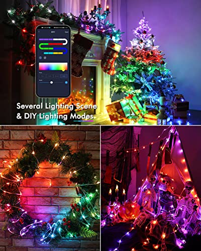 【Luminosità Regolabile & Lampadina a LED Aggiornata】 La luminosità dell'illuminazione è facilmente regolabile utilizzando l'APP, è possibile personalizzare la luminosità e la velocità tra l'1 e il 100%. Perline della lampada più grandi e luminose aggiornate, filo in PVC trasparente non aggrovigliato, non facile da rompere, non c'è problema che le normali luci a LED in filo di rame siano facili da aggrovigliare, quasi possono essere piegate e formate, facili da decorare albero di Natale, ecc.