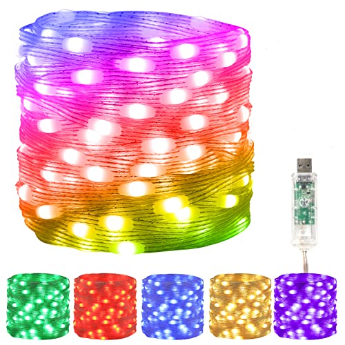 Halloween Luci Stringa Viola Arancia, BrizLabs 10M 100 LED USB Multicolore che Cambiano Colore Interno RGB Catena Luminosa Natale Esterno Impermeabili con App Luci Decorative per Autunnali Camera
