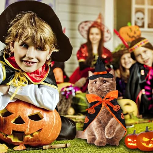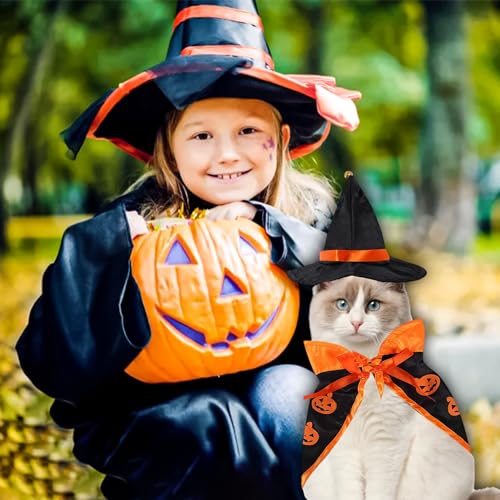 【Pacchetto Incluso】Otterrete un Halloween Pet Mantello Zucca e un cappello carino, è adatto per cani e gatti di piccola taglia, per soddisfare le esigenze del costume di Halloween del tuo animale domestico.