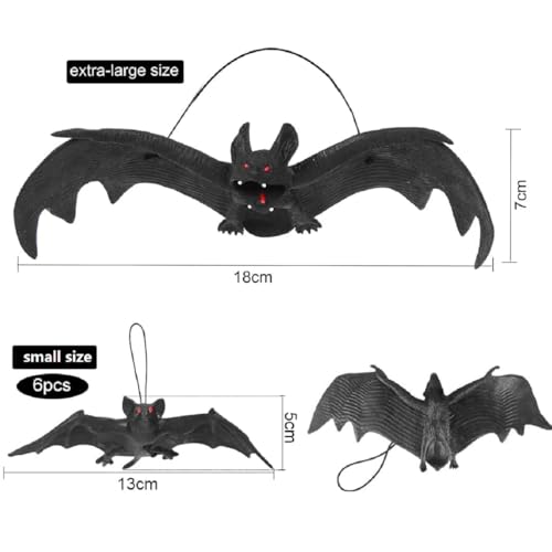 MATERIALE ELASTICO: Questi pipistrelli appesi sono realizzati in gomma morbida, elastica, resistente e riutilizzabile per un uso a lungo termine e una forma realistica. NOTA: a causa dell'aspetto spaventoso dei pipistrelli finti, i bambini sotto i 6 anni non dovrebbero essere spaventati.