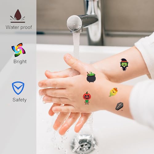【Materiale premium】Gli tatuaggi Halloween sono realizzati in carta di alta qualità, sicuro, resistente,non tossico, sono innocui per la pelle, Impermeabile e a Prova di Sudor,Divertenti per tutte le età,per soddisfare le tue diverse esigenze.