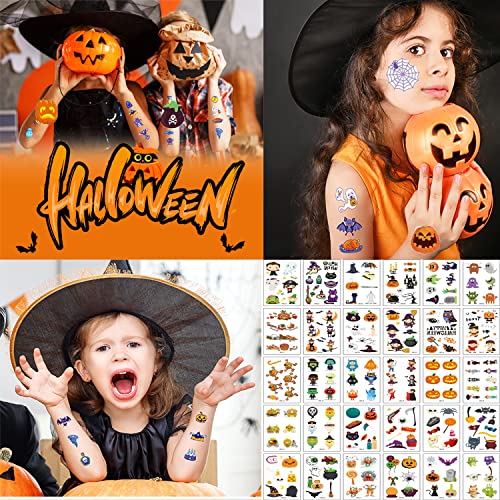 Halloween Tatuaggi Temporanei Bambini,30 Fogli Tattoo per Bambini Halloween,Halloween Tatuaggi Set Decorazioni Forniture Cosplay per Feste di Halloween
