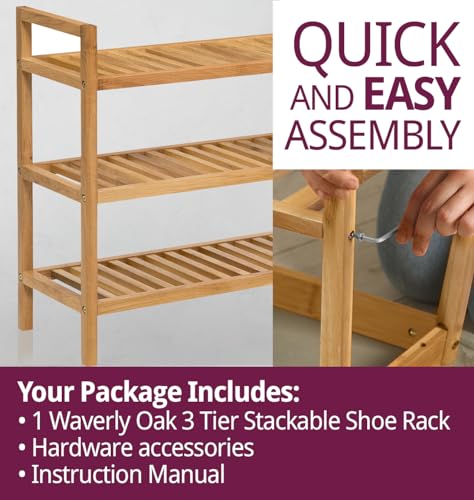 Hallowood WAV-SR700-3T Waverly-Scarpiera impilabile in Legno di Quercia, 9 Paia, 700 mm, EICHE, Rovere Chiaro, Wide, 3 Tiers