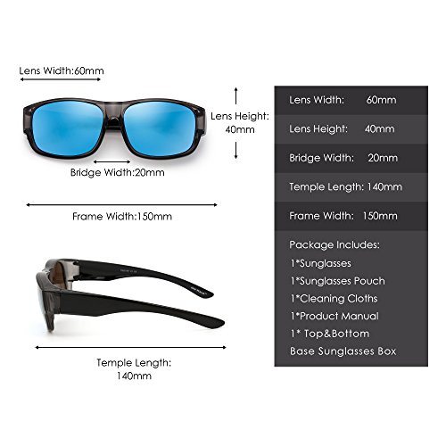 JIM HALO Occhiale da Sole Specchiato Sovraocchiali Oversize Polarizzato Indossare Occhiali da Prescrizione Uomo Donna (Grigio/Blu specchio)