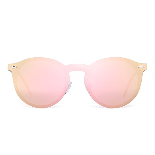JIM HALO Occhiali da Sole Polarizzati Senza Montatura Un Pezzo Riflettenti Rotondi Specchio Uomo Donna (Oro/Rosa Polarizzata)
