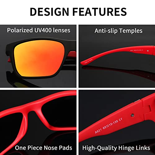 JIM HALO Occhiali da Sole Polarizzati per Uomo Avvolgenti Occhiali da Sole Sprot per La Pesca in Bicicletta Alla Guida Nero Rosso/Rosso Specchio