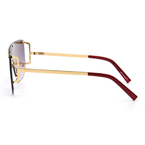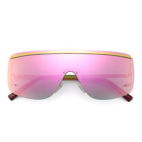 JIM HALO Occhiali da Sole Scudo Oversize Flat Top Lenti Gradiente Occhiale Senza Montatura Donna Uomo (Oro/Rosa Specchiato)