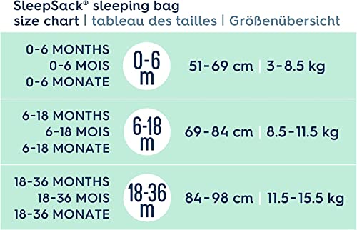 Dimensioni e misure: il nostro sacco a pelo gilet è progettato per bambini dai 6 ai 18 mesi, con un peso di circa 19-25 libbre e 23-33 pollici. Dopo 18 mesi, si prega di scegliere il sacco nanna Halo per bambini di età compresa tra 18 e 36 mesi